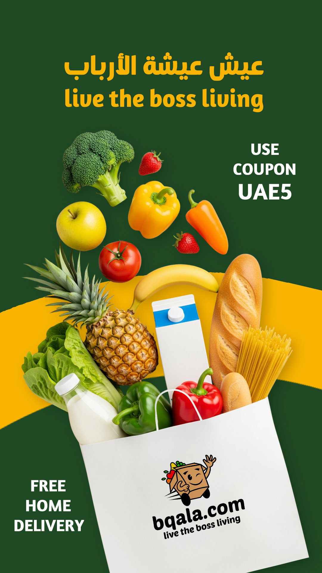 Enjoy 5% unlimited discount and free home delivery for any order above 100 AED just use the coupon UAE5